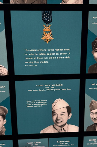 But, serve they did. The 442nd risked it all and still have the distinction of being the most decorated unit of its size and length of service in US military history. By April 1943, a total of 14,000 Nisei men served in the 442nd, earning more than 18,000 awards in less than two years. This included over 4,000 Purple Hearts, 4,000 Bronze Stars, and 560 Silvers Stars, 21 Medals of Honor and 7 Presidential Unit Citations.