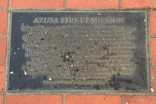 A few blocks away is this small plaque, located in Noguchi Plaza, near the Aratani Theatre, just adjacent to what has to be one of the shortest named streets in LA, Azusa Street. Literally it seems more like a wide alley, and that’s what I always thought it was. I never realized before that this was the site of the historic Azusa Street Mission Revival and the International Pentecostal Movement from 1906-1931. It was led by William Seymour, a son of freed Black American slaves, who came to LA at the invitation of Neely Terry, a black woman who attended a small LA church pastored by another woman, Julia Hutchins. Pastor Seymour led this revival that began April 1906 through 1915. Today this revival is considered to be a major catalyst for the growth of Pentecostalism in the 20th century.