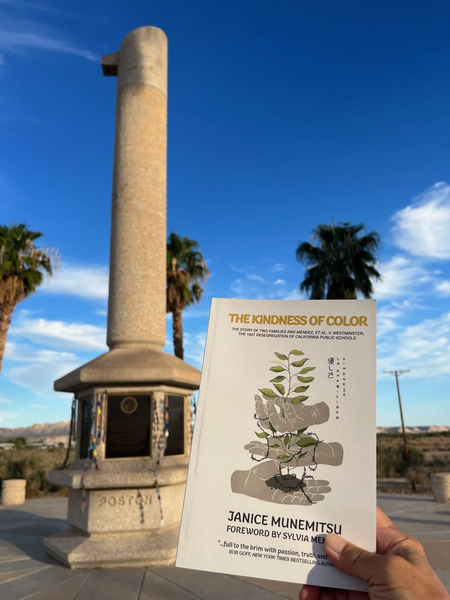 After the museum visit, we drove out to the Memorial Monument in Poston, about 15 miles from the museum. Dedicated in 1992 to commemorate 50 years since the camp’s opening, it is in the area of Poston Camp 1, where all 10 of my family members were held. The monument was a collaboration between CRIT donating the land and Japanese Americans raising the funds to build it. Many plaques surround the monument sharing the history of this land and the Japanese Americans who were forced to live there. The hexagon base represents a Japanese stone lantern, and the 30 ft. tall concrete pillar symbolizes “unity in spirit.” Perhaps, a deep spirit of community was one outcome of this incarceration camp - people living in close quarters, depending on each other for relationships, and holding hope that this would be a short season of their lives.